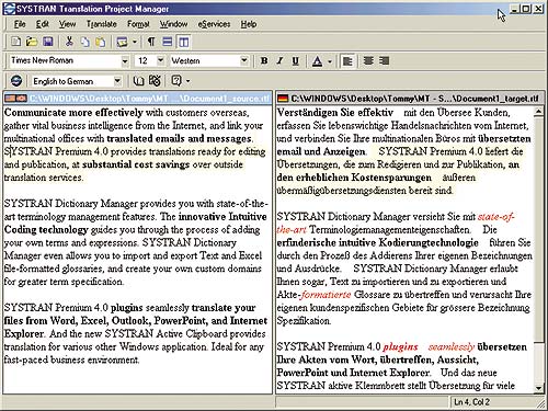 In the case of web page translations, Systran allows pages to be translated while using Internet Explorer or Firefox. Once a page is translated, the “smooth navigation” function automatically translates all of the pages that are linked to the page being viewed. This means that when you click on a link appearing on the page that you are reading, the text automatically appears in the desired language.