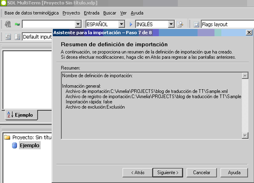 Deberá importar este glosario .xls en el programa MultiTerm Convert de la siguiente manera: