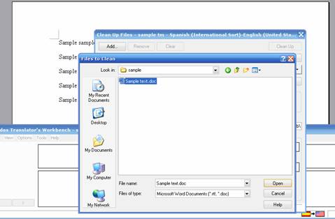 4. Ahora que ya ha creado su archivo de registro, puede seleccionar una de las cuatro opciones de limpieza del documento. La mejor opción es Actualizar TM para que los cambios que haya realizado queden incluidos en la memoria, sin tener en cuenta si el segmento de traducción que se cambió estaba abierto o no cuando introdujo el cambio: